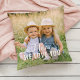 A sweet Mom We Love You photo throw pillow featuring a full-bleed photo with elegant white script and block text overlay. The two-sided design allows a different photo on the back with the same text overlay. All text is fully editable — a heartfelt Mother's Day or birthday keepsake from the kids.