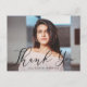 Stylish, elegant graduation thank you cards featuring a black modern calligraphy script font overlaying the graduate's favourite senior photo. Personalise the modern graduation thank you cards by adding the graduate's name, return address, and your custom message.