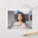 Simple, stylish graduation thank you postcard featuring the graduate's horizontal photo with "Thank You" in an elegant black script overlay. Personalise the front of the graduation thank you postcard by adding the graduate's name and graduation year. The postcard reverses to display your return address and optional message. The photo thank you postcard is perfect for both high school and college graduates.