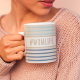 Mug in beige, blue and white. Custom quote art hashtag design "#momlife". The perfect gift for your mum on her birthday or mother's day.