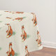 A patterned tablecloth designed with a watercolor image of a mother and baby fox. The young fox is looking up at her mother with love and appreciation. Both sitting on some grass. Orange and tan colours.
