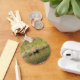 A photograph of a mother Muscovy duck swimming in a pond with her cute Muscovy ducklings on a key chain