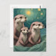 Momma Poppa and Baby Otter in the Ocean Postcard