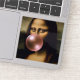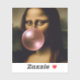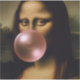 A funny representation of Mona Lisa blowing a pink bubble gum