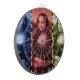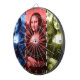 Da Vinci's masterpiece times three (x3), set off in the primary colours of red, yellow and blue... with thin vertical streamers of animal print.