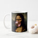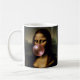 A funny representation of Mona Lisa blowing a pink bubble gum