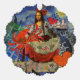 This is just a little bit of fun with the Mona Lisa - we've been very creative. The beautiful Mona Lisa has been dressed in an old fashioned red dress and sent to the beach to find a really big crab, a Cancer Zodiac collage! All ready to dance with her crab!