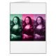 Da Vinci's masterpiece times three (x3), set off in colours of green, raspberry, and plum purple.