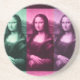 Da Vinci's masterpiece times three (x3), set off in colours of green, raspberry, and plum purple.