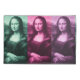 Da Vinci's masterpiece times three (x3), set off in colours of green, raspberry, and plum purple.