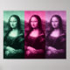 Da Vinci's masterpiece times three (x3), set off in colours of green, raspberry, and plum purple.