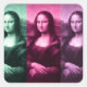 Da Vinci's masterpiece times three (x3), set off in colours of green, raspberry, and plum purple.