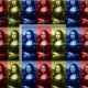 Da Vinci's masterpiece times three (x3), set off in the primary colours of red, yellow and blue.
