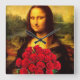 Mona Lisa With Bouquet Of Red Roses Square Wall Clock