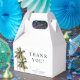 This gable favour box features watercolor palm trees and a modern minimalist design. This box can be used for any tropical or beach themed event such as a wedding, baby shower, retirement party, etc.