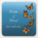 Elegant monarch butterflies in orange against a blue ombre background, creating a romantic and nature-inspired design. Perfect for outdoor, garden, or butterfly-themed weddings.