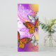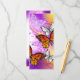 Orange, detailed monarch butterflies on light, purple, picturesque, painted background.
