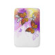Orange, detailed monarch butterflies on light, purple, picturesque, painted background.