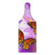 Orange, detailed monarch butterflies on light, purple, picturesque, painted background.