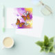Orange, detailed monarch butterflies on light, purple, picturesque, painted background.