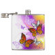 Orange, detailed monarch butterflies on light, purple, picturesque, painted background.