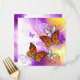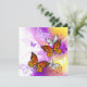Orange, detailed monarch butterflies on light, purple, picturesque, painted background.