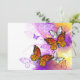 Orange, detailed monarch butterflies on light, purple, picturesque, painted background.