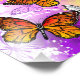 Orange, detailed monarch butterflies on light, purple, picturesque, painted background.