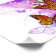 Orange, detailed monarch butterflies on light, purple, picturesque, painted background.