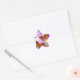 Orange, detailed monarch butterflies on light, purple, picturesque, painted background.