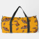Girls duffle bag with monarch butterfly pattern and place for her name. Colours are orange, gold, and black. The name is in black script above a big butterfly image. Perfect for taking to a sleepover or visit with the grandparents. This bag also comes in a smaller size.