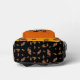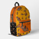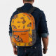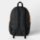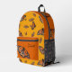 Girls backpack with monarch butterfly pattern and place for her name. Colours are orange, gold, and black. The name is in black script next to a big butterfly image. Perfect for school or travel.