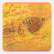 shows acrylic painting of monarch butterfly feeding on flower nectar with bicycle !
