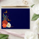 Add drama to our elegant rustic navy blue Monarch Butterflies gold foil wedding invitation. They will be enchanting emerging from this deep navy blue fall botanical and butterfly wedding mailing envelope. Colourful autumn dahlias, roses, anemone, wheat stalks and monarch butterflies adorn the front with the monarch butterfly theme both here and on the inside flap. A simple return address custom will simplify your wedding mailing.