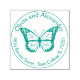 Add a decorative flair to your wedding mail and thank you notes with a stamp that you can use after the wedding season. A lovely butterfly return address self inking stamp. Add your name and address in the circle several ink colour choices. A thoughtful wedding gift idea as well.