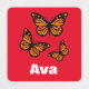 Monarch Butterfly Design - Personalise Name Small Square Red Clothing Label (0.75" x 0.75")