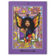 African American fairy with Monarch butterfly wings wearing purple. Colourful floral and Celtic knot work design all around the fairy.