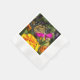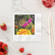 Beautiful newly born Monarch Butterfly resting on a pink marigold. Lovely photo of Spring on paper napkins. Copyright photo by Debra Carr
