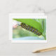 This postcard features a close-up photo of a monarch caterpillar crawling on common milkweed. Photo by Jim Hudgins of USFWS.