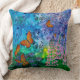 My original water colour printed on a Throw Pillow featuring Monarch butterflies fluttering about purple passion flowers and foxglove blooms on a colourful sunny day.
