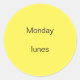 These day of the week stickers feature the word Monday along with the English to Spanish translation, lunes. The background colour is yellow, which can be customised. Thank you for shopping CherylsArt on Zazzle.