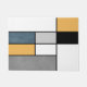 Abstract modern art with colourful (navy blue, grey, black, yellow, white) rectangles in Mondrian style on white background