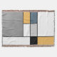 Abstract modern art with colourful (navy blue, grey, black, yellow, white) rectangles in Mondrian style on white background