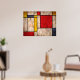 Digital artwork inspired by dutch painter Piet Mondrian. Mondrian was an important contributor to the De Stijl art movement and group, which was founded by Theo van Doesburg. He evolved a non-representational form which he termed Neo-Plasticism. This consisted of white ground, upon which was painted a grid of vertical and horizontal black lines and the three primary colours