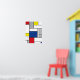 This simple design features modern and graphic colour blocks, bold black lines and bright colours with retro circles pattern. It is inspired by Piet Mondrian's abstract works and movement.