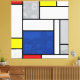 This simple design features modern and graphic colour blocks, bold black lines and bright colours with retro circles pattern. It is inspired by Piet Mondrian's abstract works and movement.