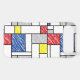 Mondrian Minimalist De Stijl Modern Art Scribbles And Sketches in Red, Blue, Yellow And Grey Colour Blocks Design.