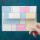 Mondrian Yellow, Pink, Blue, and Black line gifts and accessories features our textured Piet Mondrian inspired art with our unique signature texture and colours in geometric abstract patterns created by our talented artist and draftsman, Kurt Keller.