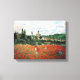 Monet Field of Red Poppies canvas wrap. Oil on canvas from 1879. Monet painted several different poppy fields during his career. This particular painting features several young women in sundresses and sunhats collecting the red flowers before a river on a slightly cloudy summer day. A pretty gift for fans of Monet, Impressionism, Red Poppies, and flower art.