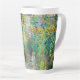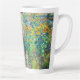 Latte Mug featuring Claude Monet’s oil painting The Artist's Garden at Vétheuil (1880). Sunflowers and other beautiful blue and red flowers line a garden path where children are taking a pleasant stroll. A great gift for fans of impressionism and French art.